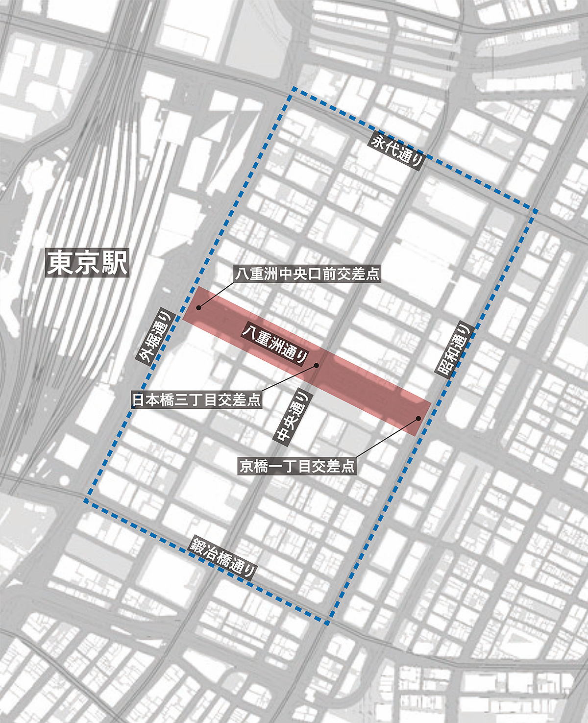 本ビジョンは、八重洲通りを「歩行者中心」で「居心地の良い空間」として再編することを見据え、地元住民や民間事業者に将来像を共有することで、今後の八重洲通りのあり方を議論するためのたたき台となることを目的としています。