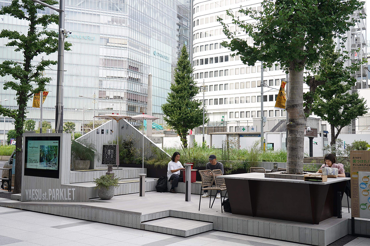 これまで、地域団体や地元企業によって構成される東京駅前地区駐車対策協議会において、八重洲通りの再編の可能性について議論を重ね、2023年10月には、道路を賑わいあふれる空間として活用する社会実験として「YAESU st. PARKLET」が実施されており、本ビジョンの検討につながっています。