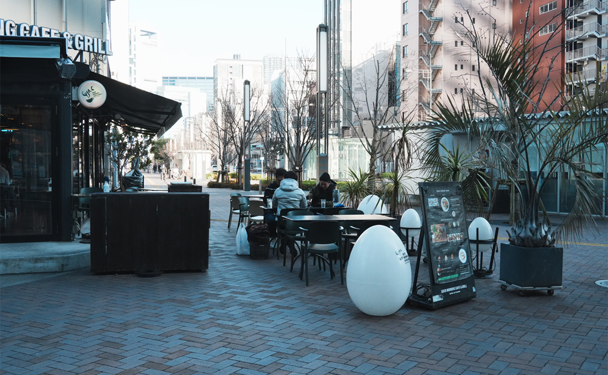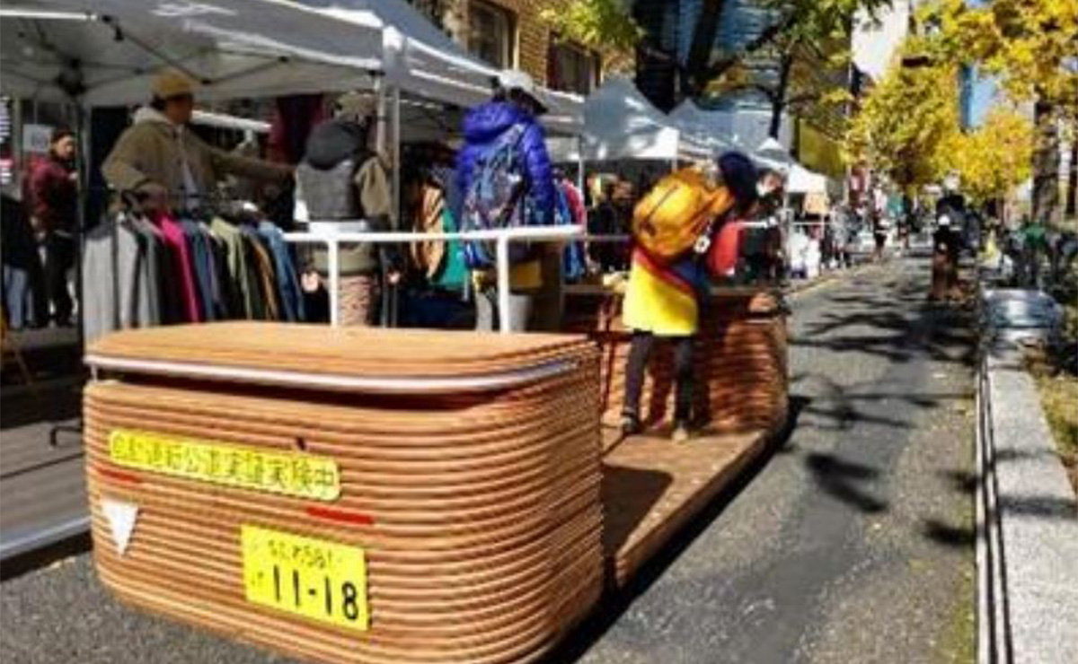 大阪のメインストリートである御堂筋では、2037年までに「完全歩道化」を目指しており、その第一段階として側道の歩道化が進められています。実現のための影響検証として、閉鎖された側道を活用した滞在空間や賑わいの創出が行われました。地元企業などで構成されるエリアマネジメント組織によって運営されています。