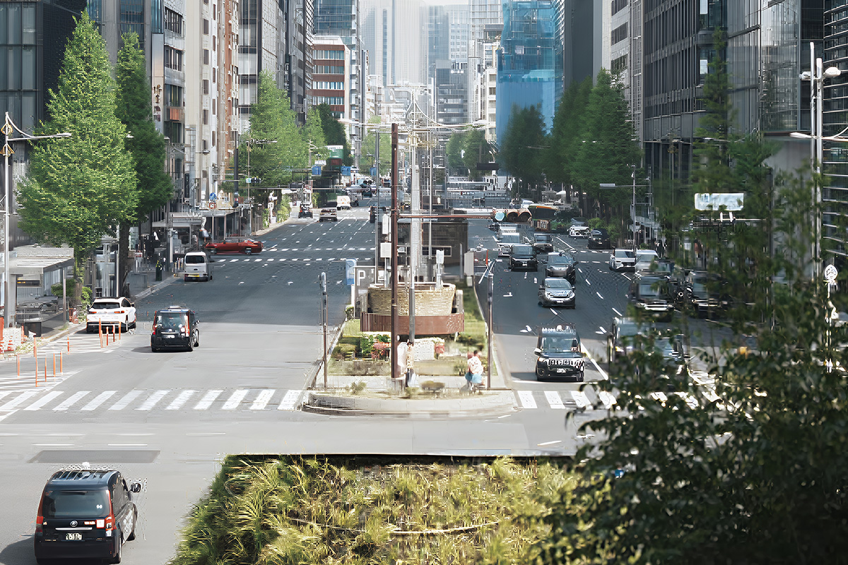いまや国際都市となった東京の駅前通りである八重洲通りにおいては、その立地のポテンシャルを最大限に生かせるよう、まちの設えを整えることが重要です。まちの魅力を最大限引き出すとともに新たなにぎわいを創出し、日本の魅力を発信しながら、東京駅から駅前地域への回遊の基軸として東京の新しいシンボルとなるような人中心の道路空間再編を目指します。